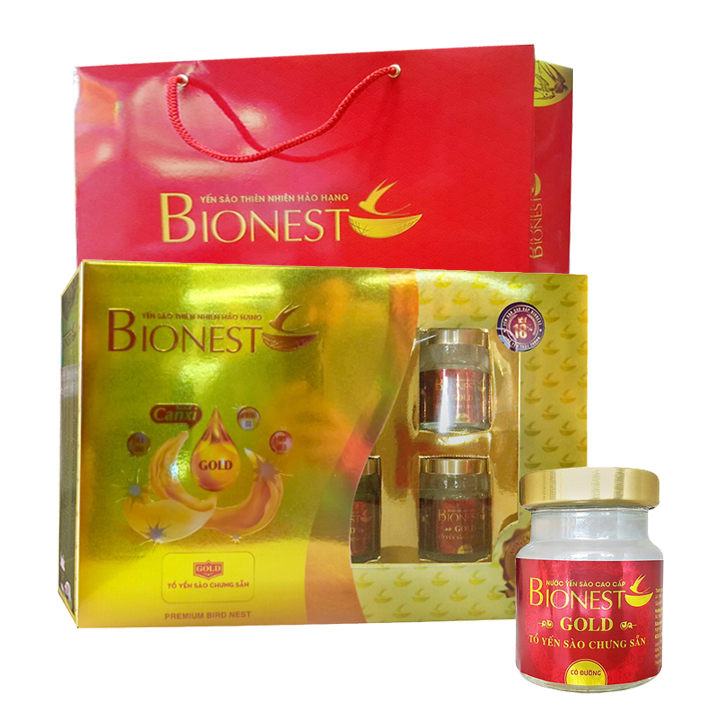 Từ xa xưa, Yến Sào đã luôn là một tặng vật quý giá, bát bữu chốn cung đình, được các bậc vương tôn quý tộc trao tặng người thân khi tuổi cao, lúc sức yếu, cần bồi bổ và tăng cường sức khỏe. Ngày nay, được nghiên cứu bởi các chuyên gia dinh dưỡng về Yến, Nước Yến Sào cao cấp BioNest Gold chính là giải pháp Dinh dưỡng tối ưu giúp BỒI BỎ SỨC KHỎE Thành phần chính Yến sào thiên nhiên 18% Giúp bổ sung dinh dưỡng, phục hồi sức khỏe.