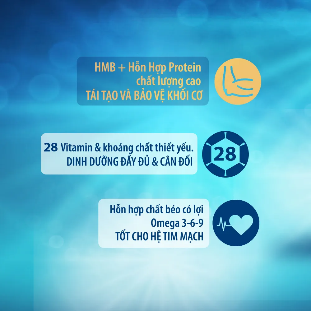 Hỗ trợ xây dựng và phát triển các khối cơ nhờ có HMB (β-hydroxy-β-methylbutyrat) và protein chất lượng cao