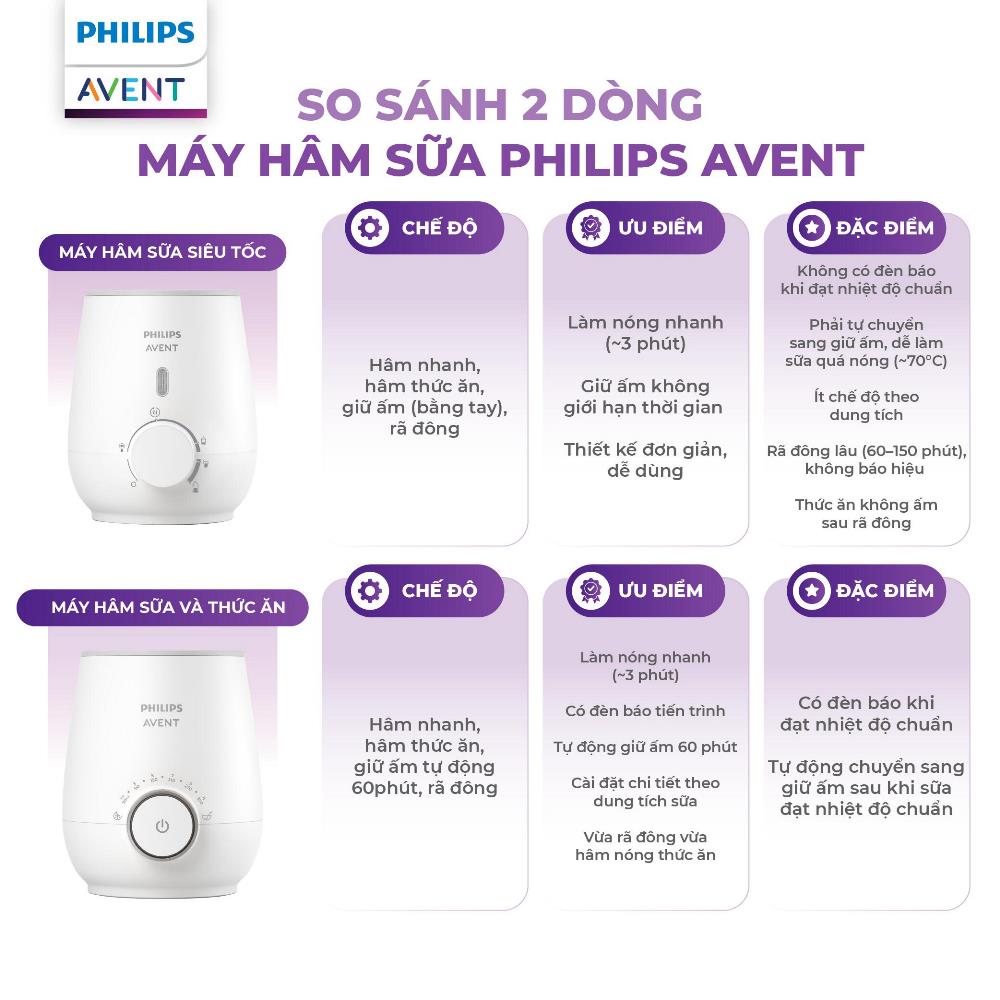 - Hâm nóng nhanh chóng: Máy hâm sữa và thức ăn siêu tốc Sunshine hiệu Philips Avent SCF358/00 nhanh chóng hâm nóng sữa và thức ăn cho bé chỉ trong vài phút với độ nóng hoàn hảo. Chỉ cần cho nước vào và chọn cài đặt. Máy hâm nóng 125ml/4oz sữa tại nhiệt độ 20oC/70oF bằng bình sữa mô phỏng tự nhiên Philips Avent 260ml/9oz trong khoảng 3 phút.