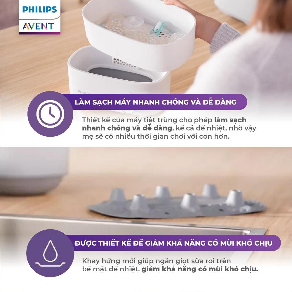 - Thiết kế tối ưu không gian: chứa được tới 6 bình sữa Philips Avent cùng phụ kiện như núm ty, ty ngậm, dụng cụ hút sữa...